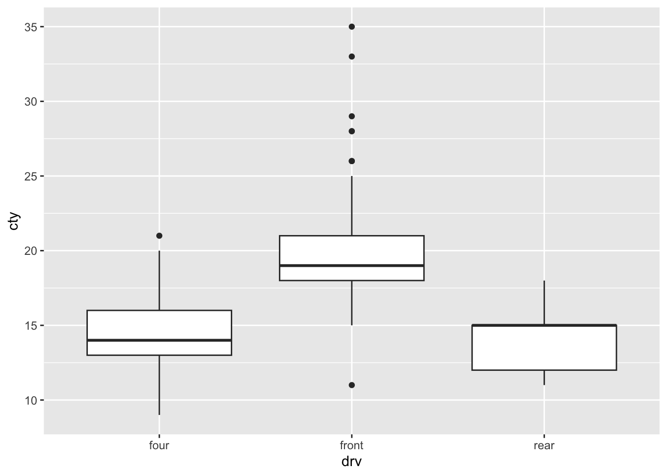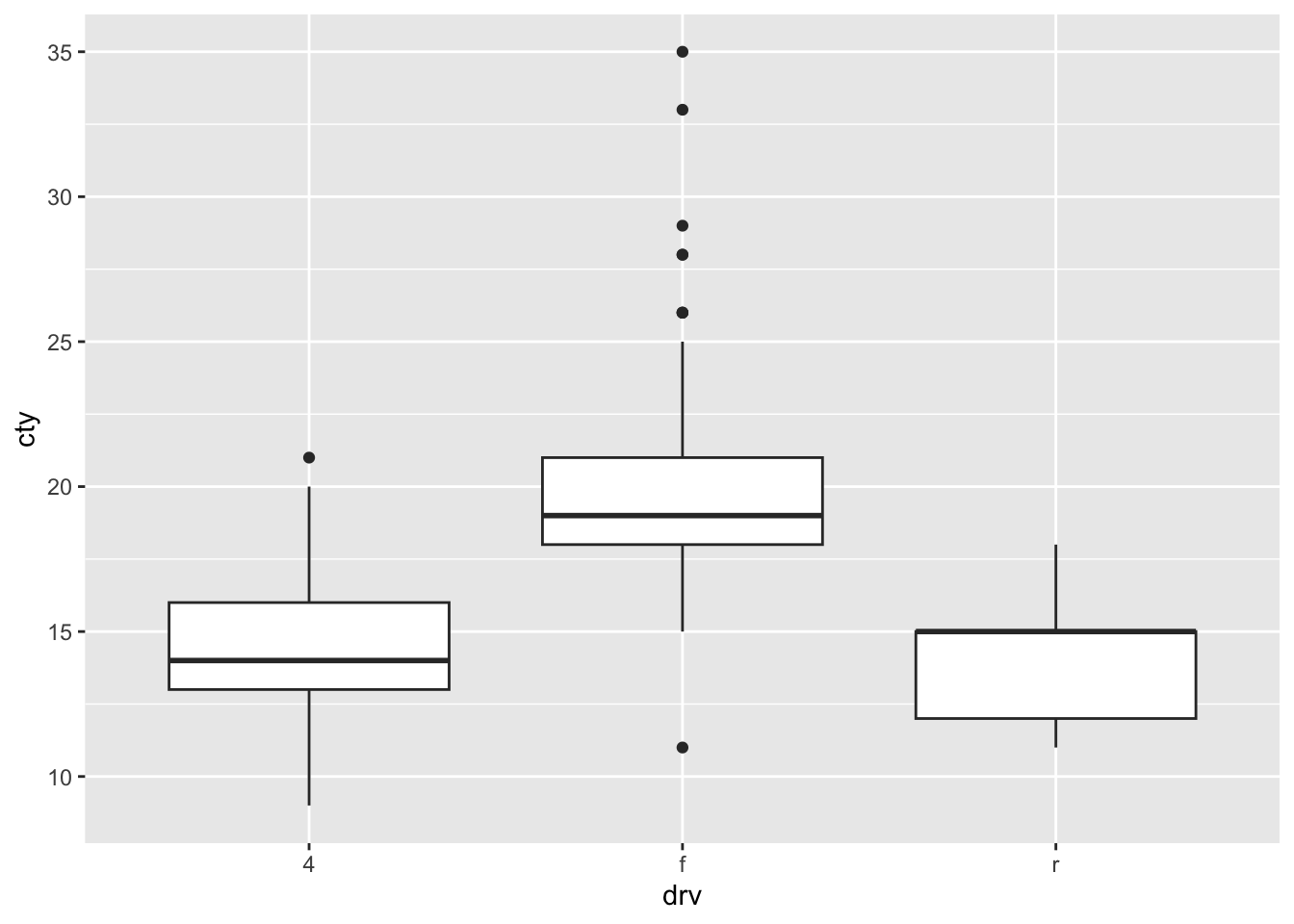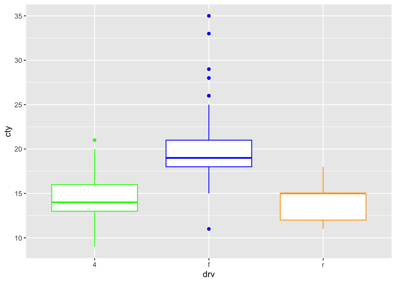 ggplot(mpg, aes(x = drv, y = cty, fill = drv)) +